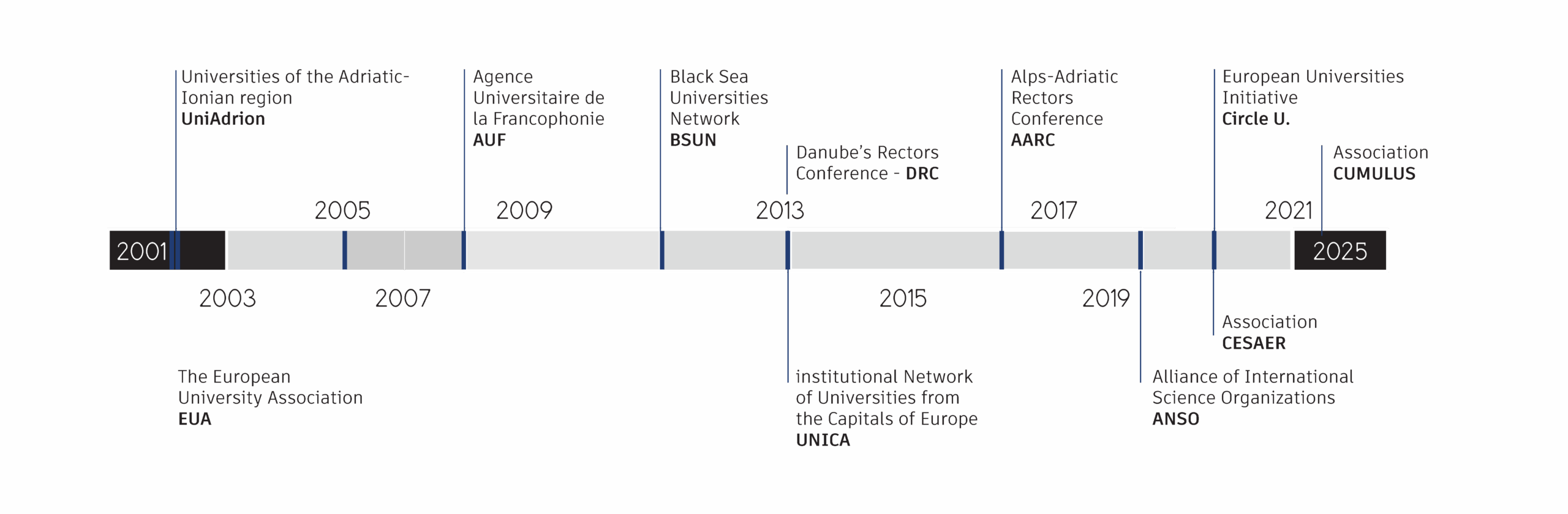 EUA is the result of a merger between the Association of European Universities (CRE) and the Confederation of European Union Rectors’ Conferences, which took place in Salamanca, Spain, on 31 March 2001.