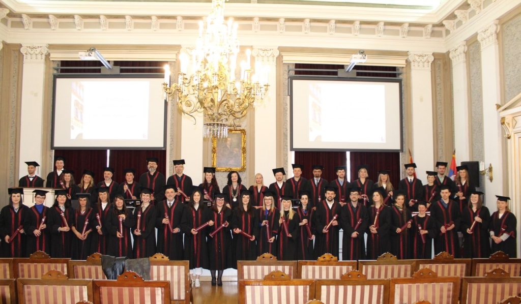 Доктори наука са два факултета Универзитета у Београду промовисани су на традиционалним церемонијама у Свечаној сали Ректората на Студентском тргу. Дипломе је најпре 18. априла кандидатима са Филозофског факултета уручио проректор проф. др Бранислав Боричић, а дан касније колегама са Филолошког факултета проректорка проф. др Зорица Вујић. Укупно је додељено 88 докторских диплома онима који су своје дисертације написали и одбранили у последњих неколико година, и то 44 за филологе и 44 за докторе наука на одељењима Филозофског факултета.