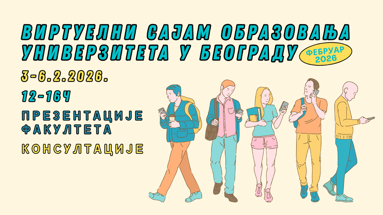 Виртуелни сајам образовања Универзитета у Београду, од 26. до 29. новембра 2024. (онлајн) Детаљније »